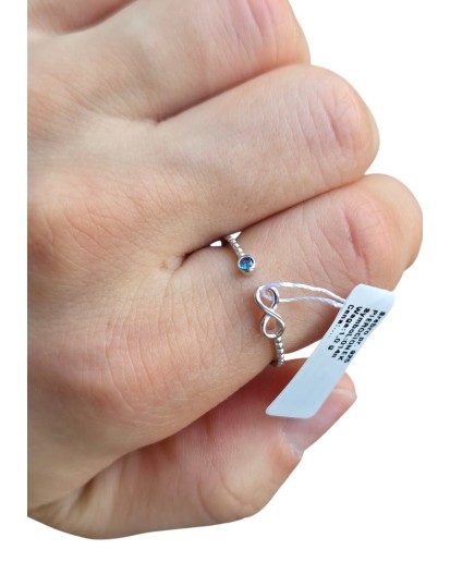 Regulowany pierścionek srebrny 925 rodowany z nieskończonością i niebieską cyrkonią